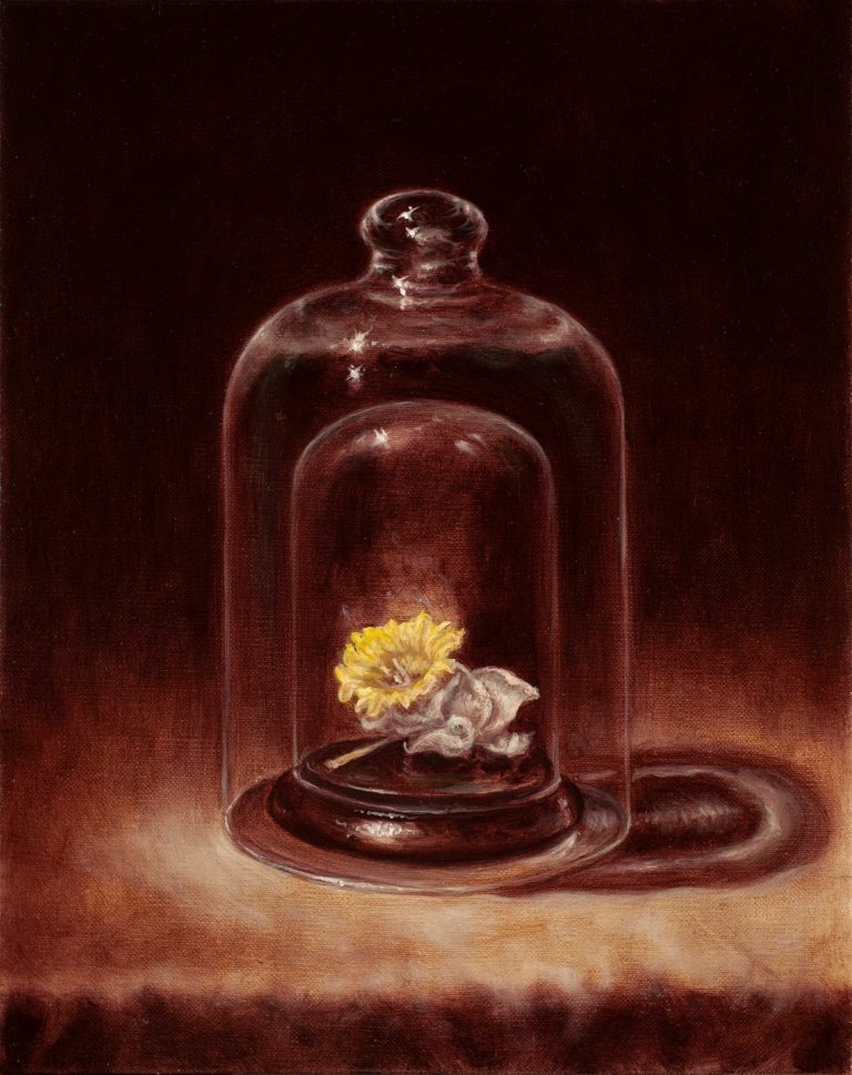 La personale dell’artista veneziano David Dalla Venezia rappresenta il cuore della manifestazione “più o meno positivi” di quest’anno, trattando il tema del corpo, del doppio e dell’autorappresentazione. In esposizione tre raffinatissimi cicli pittorici pervasi di mitologia classica e sue relative elaborazioni psicoanalitiche, di filosofia ma anche di cultura pop. Un intenso immaginario pittorico che parte da una rigorosa ricerca sulla possibile rappresentazione del corpo umano che va dal nudo all’autoritratto, accarezzando così anche tutti i vizi e le virtù dell’uomo. La mostra si apre con una serie di quadri dal forte impatto epidermico che ci fanno riflettere sul tema della frammentazione del corpo. Pallide membra affiorano dal buio e vengono isolate sotto il riflettore della luce di un ritratto a loro dedicato, denunciando così tutta la loro caducità terrena. Si passa poi al potente mito del giovane Narciso in cui i candidi e narcotizzanti fiori dipinti velano lo sguardo dell’artista e attraverso un sottile gioco di trasparenze restituiscono allo spettatore l’immagine del pittore trasfigurata dal narcisismo, mettendo così il pubblico in guardia dai pericoli dell’autocompiacimento, della vanità e dell’egocentrismo. Da fondali profondissimi infine emergono figure di algide danzatrici vestite solo di lucida e trasparente organza che sembrano celebrare una novella danza della vita prima di ritornare nell’Ade, proprio come la ninfa Euridice del mito greco. Una mostra che celebra dunque il corpo e la vita ma che allude anche alla dualità della ricerca della luce nelle tenebre, del bene nel male, e che riecheggia allusioni alla Vanitas e al Memento mori, da sempre chiari moniti dell’effimera condizione dell’esistenza e della caducità della vita.